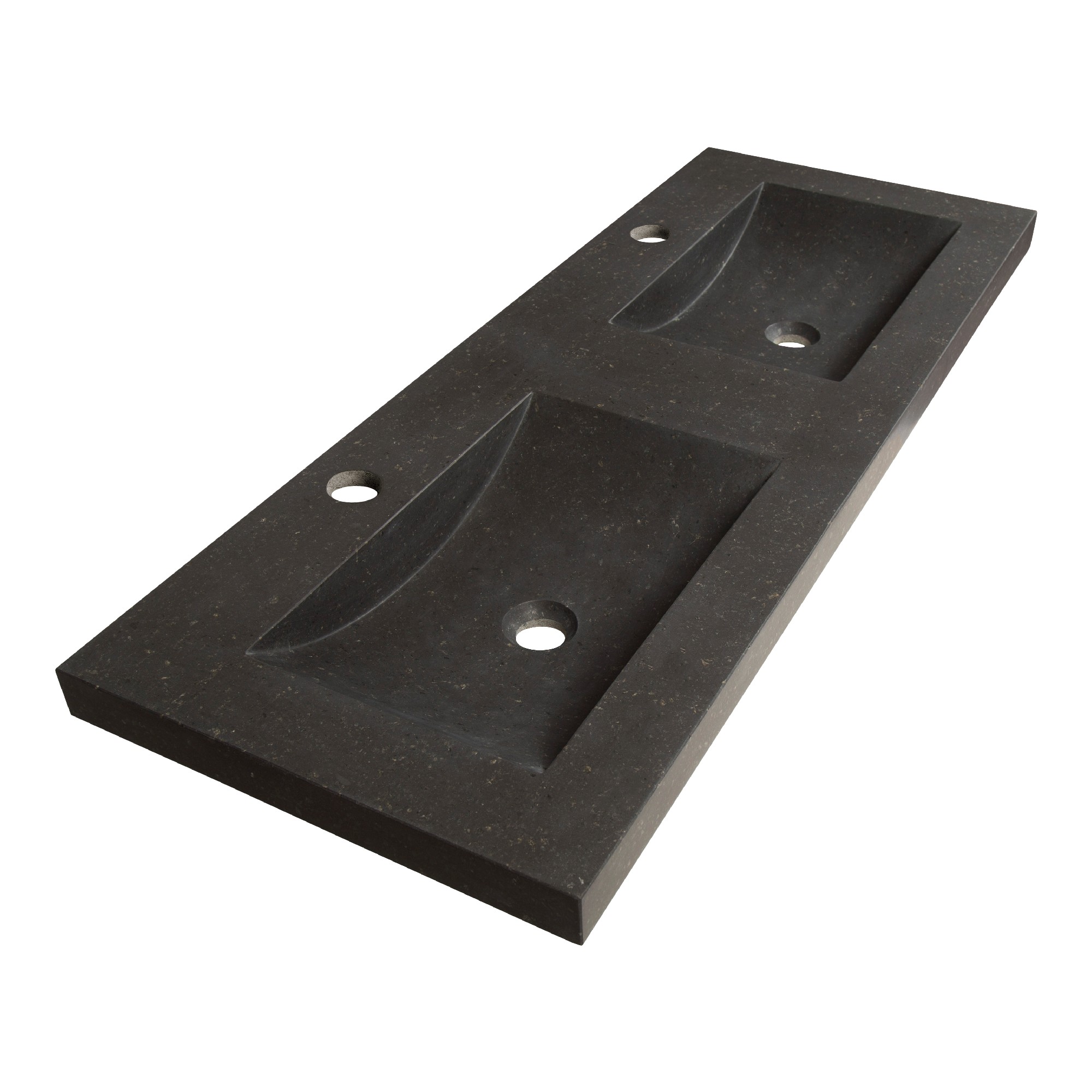BRAUER Magma wastafel 120-2 met 2 spoelbakken en 2 kraangaten natuursteen basalt antraciet