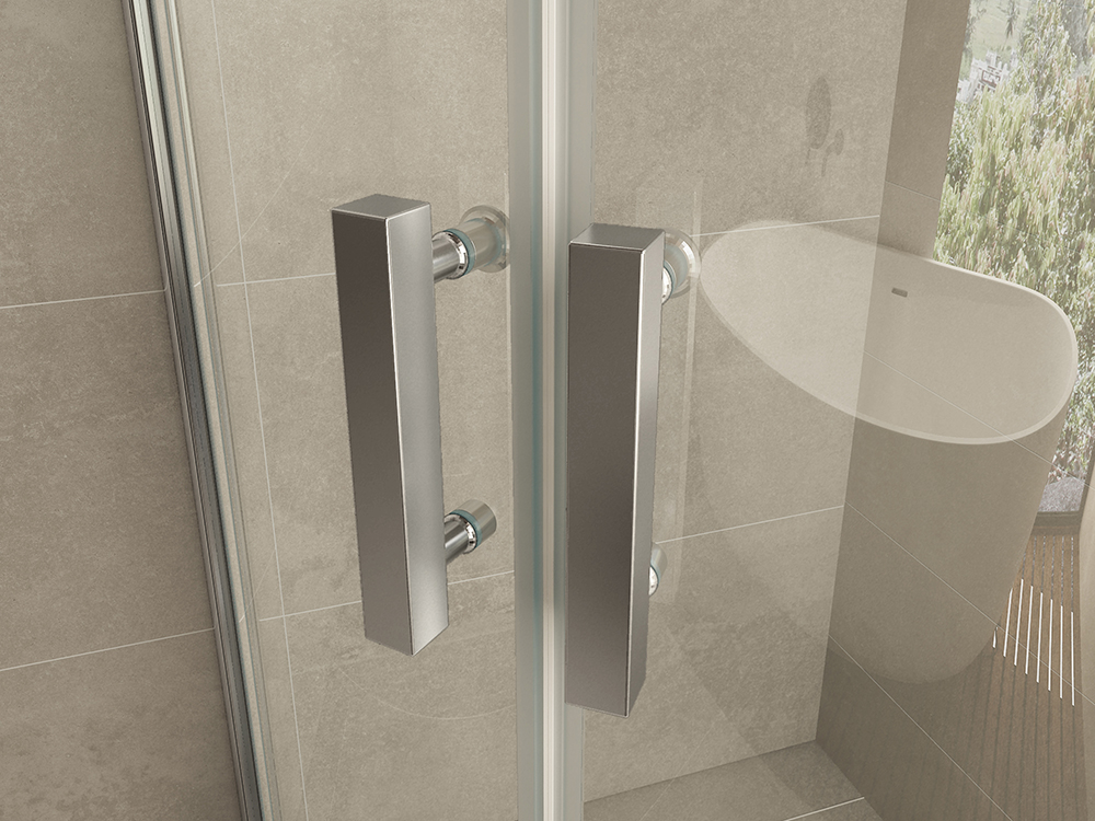 Double cabine kwartrond met 2 draaideuren 1000 x 1000 x 2000 x 8 mm nano helder glas/chroom