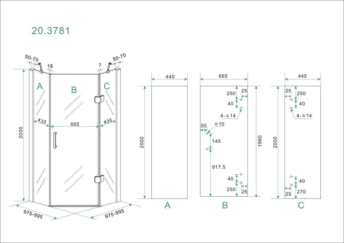 5-hoek douchecabine