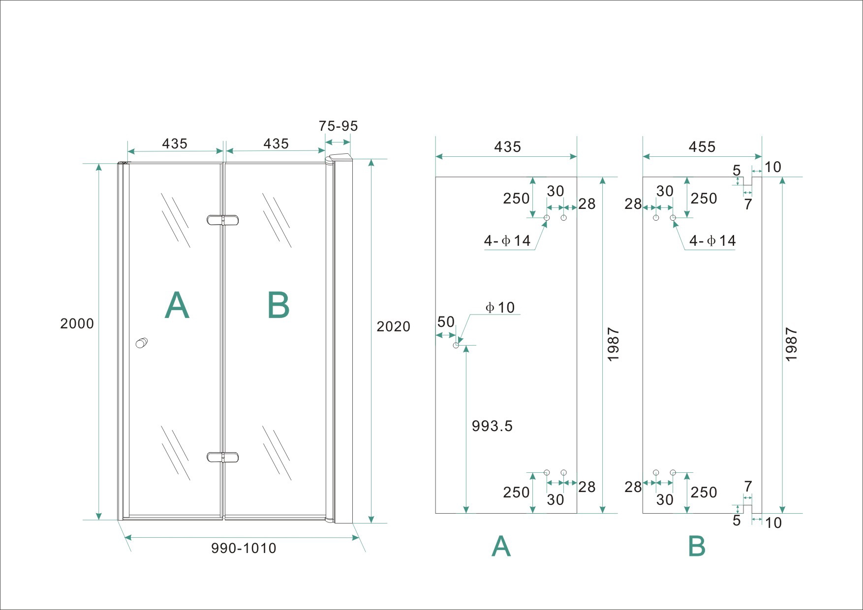 vouwbare nisdeur 1000×2020 rechts 8mm NANO glas