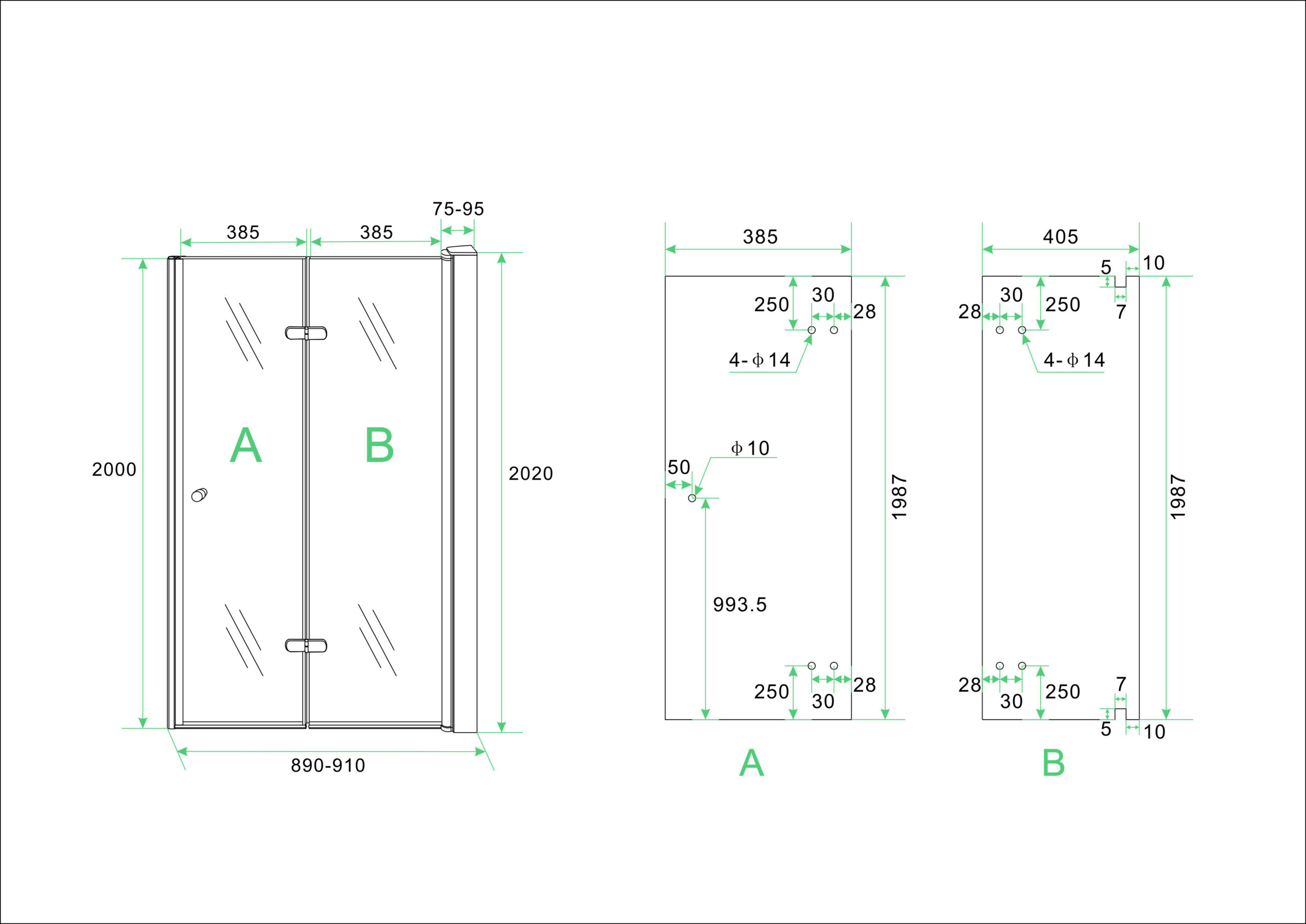 vouwbare nisdeur 900×2000 rechts 8mm NANO glas