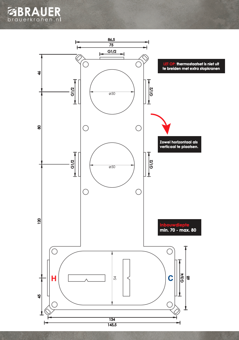 De thermostatische kraan zorgt voor een constante watertemperatuur en is voorzien van een 38°C veiligheidsblokkering, waardoor je altijd comfortabel en veilig doucht – ideaal voor gezinnen met kinderen.