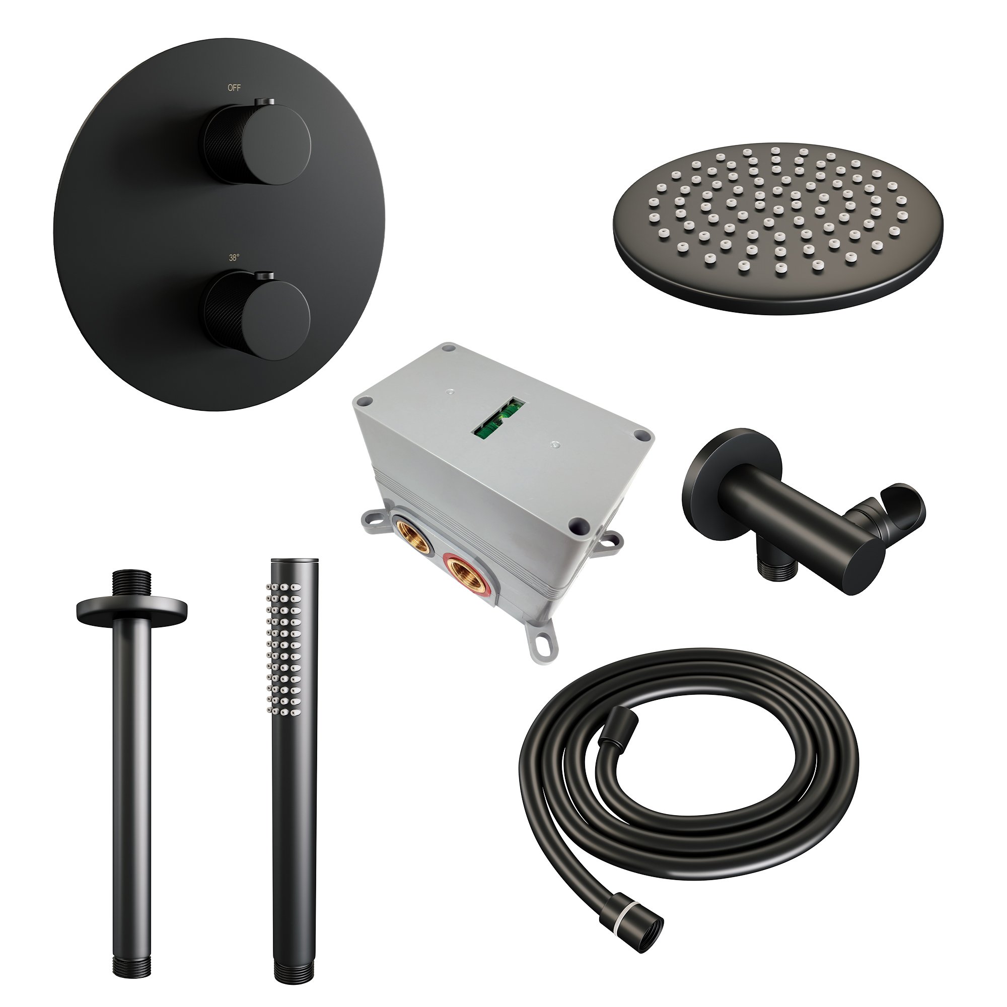 Geef je badkamer een moderne en stijlvolle uitstraling met deze complete inbouw regendoucheset in zwart mat uitvoering. De strakke, matte afwerking zorgt voor een krachtig en eigentijds design, terwijl de minimalistische vormgeving perfect aansluit bij zowel industriële als moderne badkamers. De ronde afdekplaat geeft de set een zachte en harmonieuze uitstraling.
