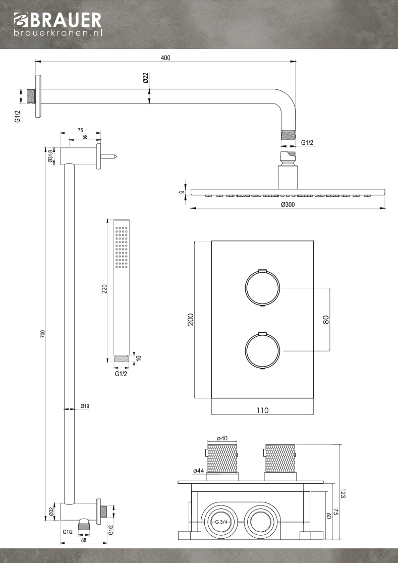 De thermostatische kraan zorgt voor een constante watertemperatuur en is voorzien van een 38°C veiligheidsblokkering, waardoor je altijd comfortabel en veilig doucht – ideaal voor gezinnen met kinderen.