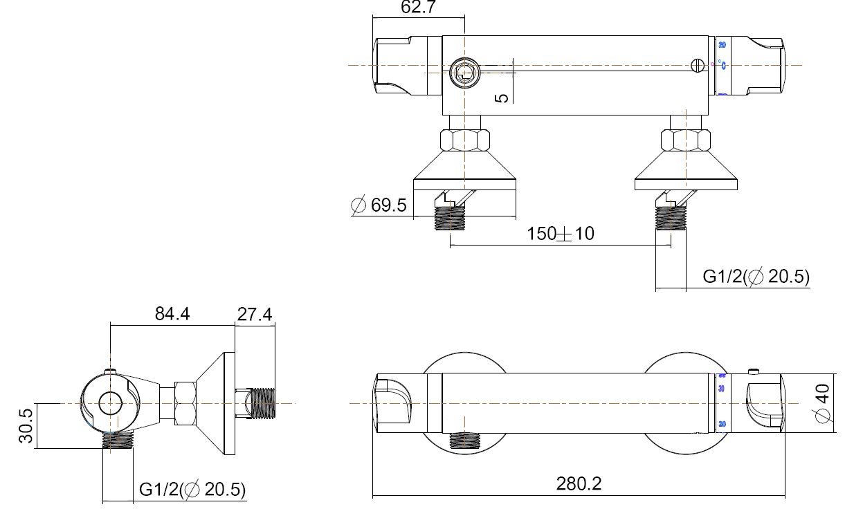 Universele thermostatische douchemengkraan 15cm chroom