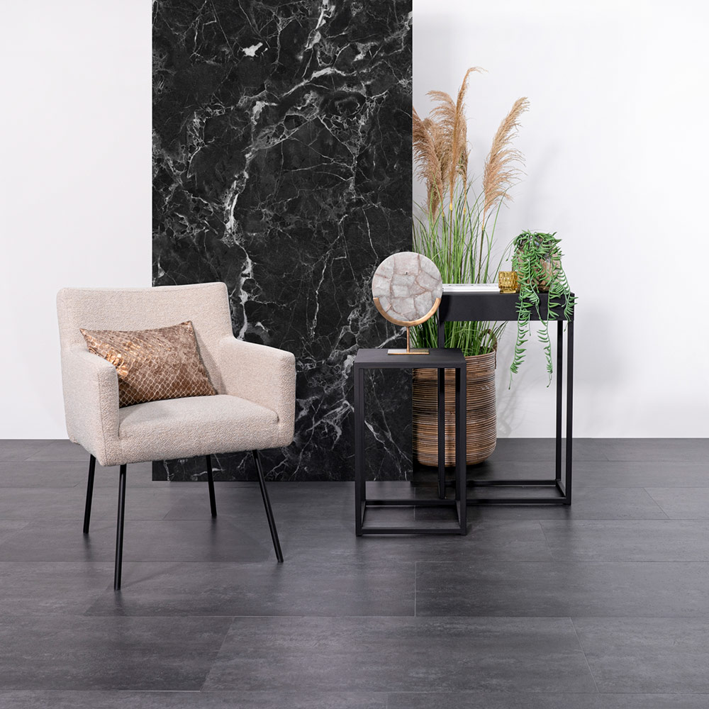 De Stone 9011 is een hoogwaardige LVT plank met een afmeting van 60,96×60,96 cm, verpakt per 3,72 m². Dit product valt onder de categorie PVC – Dryback en beschikt over een V-groef aan vier zijden. De plank heeft een brandklasse van Bfl – S1 en is geschikt voor vloerverwarming tot een maximum van 27 graden. Met een warmte doorlaatbaarheid van 0,036 Kw/m² en een geluidsdemping van 4 dB, biedt het comfort en functionaliteit. Bovendien is de Stone 9011 voorzien van een Coral embossing, wat bijdraagt aan de esthetiek. De plank is ook geschikt voor gebruik met zwenkwielen bij intensief gebruik en heeft een statische oplading van minder dan 2,0.