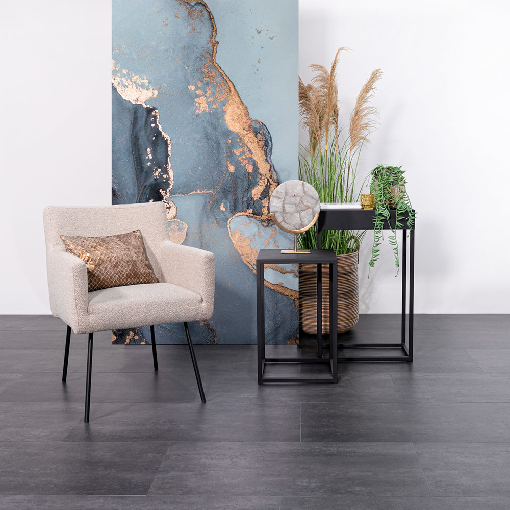 De Stone 9011 LVT plank heeft een formaat van 91,44×91,44 cm en wordt geleverd in een verpakking van 4,18 m². Deze PVC – Dryback vloer biedt een V-groef aan op vier zijden en is geschikt voor gebruik bij vloerverwarming tot een maximum temperatuur van 27 graden. Met een brandklasse van Bfl – S1 en een geluidsdemping van 4 dB, staat deze vloer garant voor veiligheid en comfort. De warmte doorlaatbaarheid bedraagt 0,036 kW/m², en de statische oplading blijft onder de 2,0. Daarnaast is de Stone 9011 geschikt voor zwenkwielen bij intensief gebruik en heeft het een Coral embossing, wat zorgt voor een fraaie uitstraling.